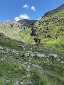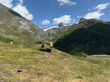 Départ pour le beau parcours en boucle du Pas de la Mule qui longe le Torrent de la Lombarde. Certains en milieu de boucle prennent la direction du col de l'Autaret (3072 m d'alt.) pour un aller retour. Malheureusement les névés nous ont vite fait rebrousser chemin. Nous sommes bien déçus de ne pas pouvoir continuer mais la sécurité prime avant tout aux randonneurs montbrisonnais. De retour au refuge certains décident de repartir arpenter un chemin face au refuge, d'autres un bain de pied au torrent et d'autres choisissent de se relaxer avec une boisson....
