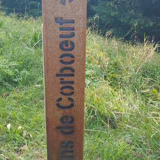Un peu frais, une mer de nuage sur notre droite et la rando commence par le sentier découverte du ravin de Corboeuf , un canyon d'argile multicolores (curiosité géologique classée). Ce site offre une forme de ravinement argileux spectaculaire qui ressemble à des drapés, que chacun a immortalisé en photo.
