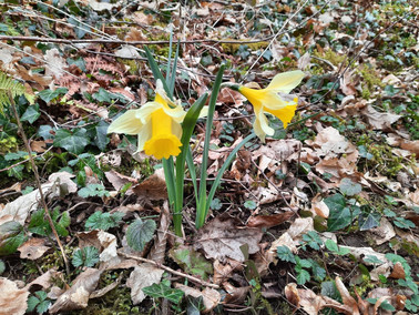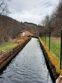 Changement complet de paysage dans la vallée au bord de la rivière Aix ,aves ses buis étouffés par des chapelets de mousse, ses jonquilles inopinées sur l'autre rive, formant un décor irréel. Retour à la réalité par la visite très intéressante, par le maître des lieux, d'une petite centrale hydro-électrique datant de 1894, construite par Durel, Jay et Naake (pour les connaisseurs), d'une puissance de 1200 KW et rénovée de 2010 à 2015.